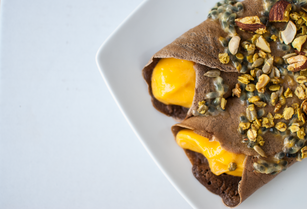 RECEITA // Crepes de Alfarroba com Gelado de Manga